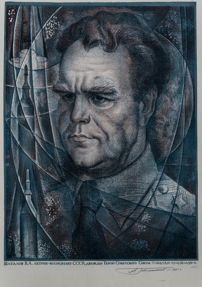 Серия графических портретов А.М. Гетманского(1937-1996) посвящена летчикам–космонавтам, которые приблизили для нас, людей сегодняшнего дня, звездные миры.